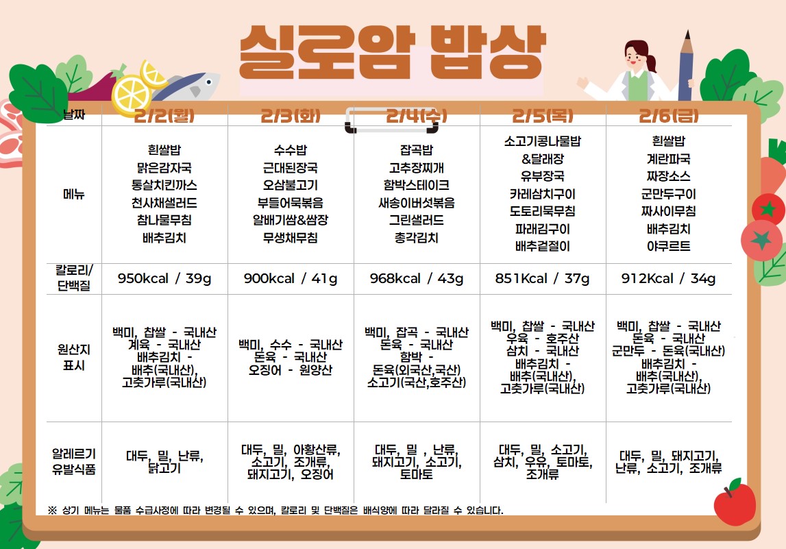 2026년 2월 1주차 식단 (2/2~2/6) |
